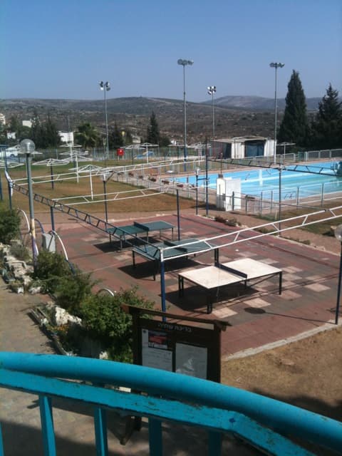 The bus ride to Ariel was an experience in itself. The journey goes through Palestinian areas and so has to be made in an armored bus. The bus had reinforced glass and the glass was darkened so that snipers would find it harder to pick out targets. Many of the windows had visible damage from previous attacks. The bus stopped at many settlements along the way to Ariel, and I was able to get a feel for what a settlement looks like. All settlements were at the tops of hills and had security gates controlling access.