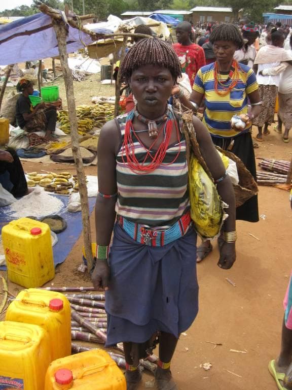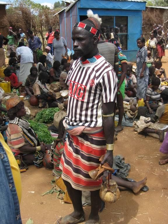 It isn't just San Francisco where men wear miniskirts. If you are a Banna tribesman then a miniskirt is considered the height of masculinity. We met up with the Banna, and their relatives the Tsami, at the Key Afra Market. Most of the people were wearing their traditional clothing, but some wore western clothing, or even mixed the two together. My guide (himself a Banna) told me that many people own both kinds of clothes and choose which to wear based on the occasion.