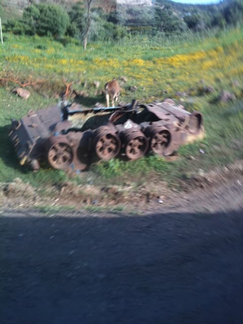 Checkpoints became particularly frequent as we got close to the border with Eritrea. Ethiopia and Eritrea still have a tense relationship and the roadside was strewn with burned out tanks from their recent war. We also went past a refugee camp housing people who were displaced by the war. Unlike Jenin, there were definitely no quotation marks required for the description of this camp.