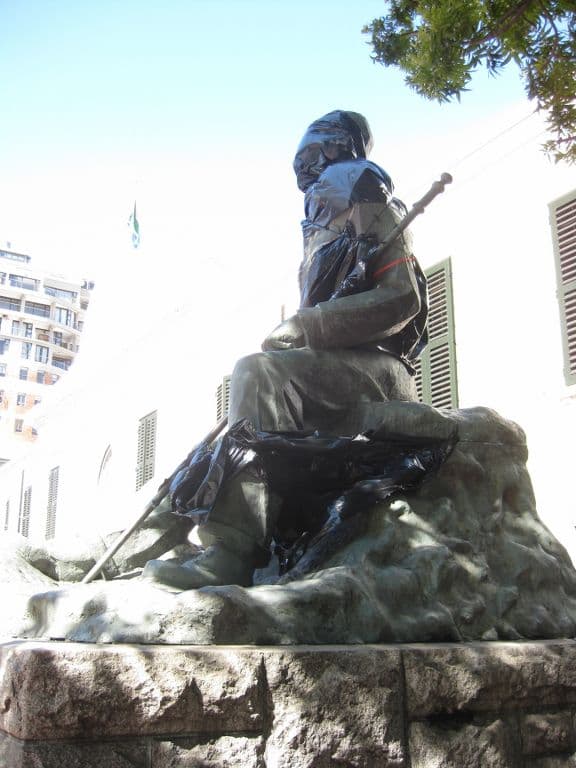Cape town seems more integrated that Joburg. Although most white people still try to avoid going outside and prefer to get around by car, you will see some walking around the safer areas downtown. In the posher areas with armed security, such as the V&A waterfront, you will largely see white people walking around, but also an occasional black face. Similarly, although most restaurants are very much white or very much black, you will see the occasional black face in a white restaurant. Of course, it's possible that this observed difference is just a result of me having seen different parts of the two cities. You still see obvious examples of tensions about the past. A statue of Jan Smuts, a white leader who introduced some of the apartheid laws, is currently wrapped in black plastic bags, and has abusive graffiti written over the title plate.
