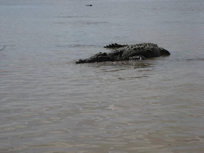 Some of the crocodiles were enormous. One of them looked like it was around ten feet long. Most of the time they lie motionless on the mud flats, but if you get too close to one then it will suddenly thrash around violently and swim off.