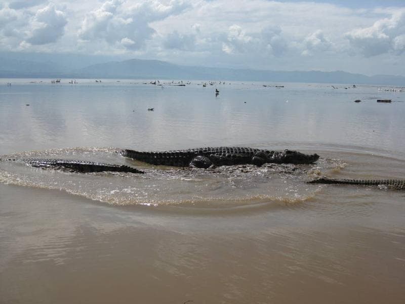 Lake Chamo is a rift valley lake that is famous for its crocodiles and hippos. I rented a small boat (including driver) to take me to the place where the crocs like to hang out.