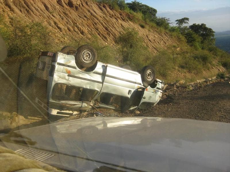 Our car is a 1989 land cruiser with nearly 300k on the clock and a cracked windscreen held together by "Jesus us the answer" stickers. Fortunately it seems to be in great condition and chews up tough roads like it is driving on asphalt. A land cruiser is definitely the best way to travel. One can go much faster than a bus and in much more comfort. The route was quite treacherous in places and we passed several cars that had failed off cliffs, rolled off slopes, caught fire, or otherwise met sticky ends. I was pleased that I wasn't doing the driving and Yetnayet seemed to know what he was doing.