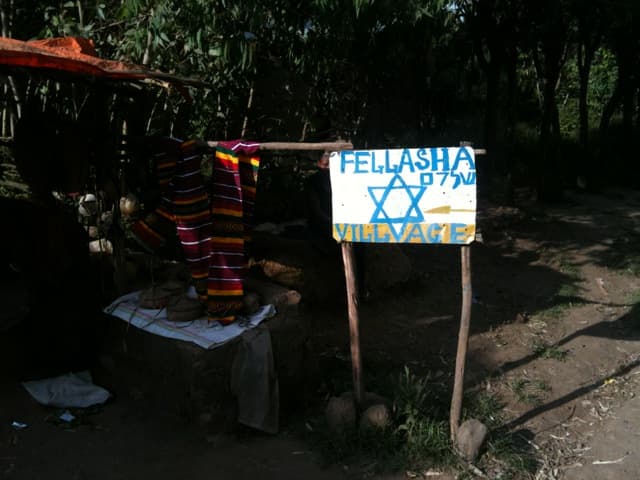 I visited a Falasha village a few miles from Gondar. The village seemed much the same as any other Ethiopian village. The people seemed ethnically indistinguishable from other Ethiopians and the buildings and clothing seemed much the same as a Christian village. The most notable difference was that the villagers had painted Star of David logos everywhere and one of the mud huts was designated as a synagogue.