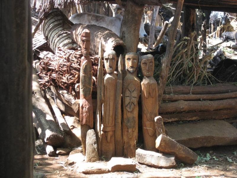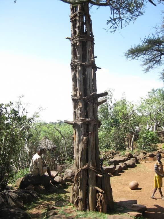 Historically the Konso would fight with the neighbouring lowland tribes, but things have apparently been peaceful for a while now. Scattered around the village were several wooden sculptures called wakkas. Each wakka honours a hero who has killed members of another tribe. The wakka shows the hero in the middle with his wives around him and the people he killed in the outside. The biggest wakka I saw was for a hero who seemed to have killed ten people.