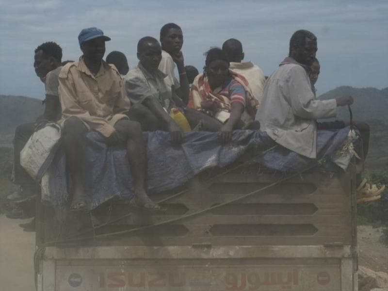 Incidentally, the uncomfortable buses that I complained about earlier are considered a luxury here. In the Omo most people travel in the back of, or hanging off the side of, overfilled supply trucks. It is apparently quite common for passengers to die and the government banned foreigners from riding the trucks after tourist deaths risked making the country look bad.
