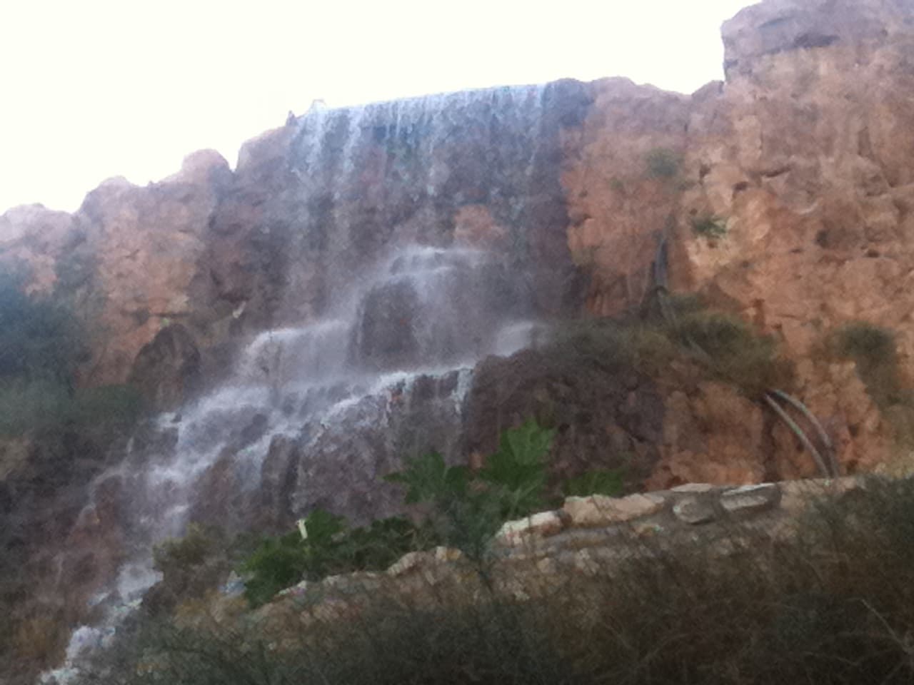 Further to the north in a narrow gorge is the rather pretty north gate of the city. A scenic waterfall ran down one of the cliffs, but further inspection revealed that the waterfall may have human assistance. There is a pumping building at the bottom, pipes run up to the top, and the water doesn't seem to go anywhere after it reaches a pool at the bottom.